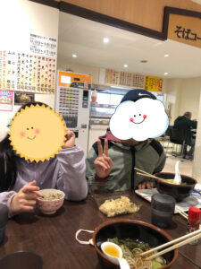 そばの香ばしい味のソフトとワッフルコーンで子供達も絶賛していました。