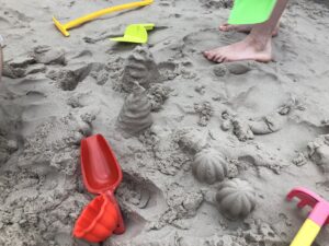 型抜きやスコップなどもあり、屋内で思う存分砂遊びが出来る!