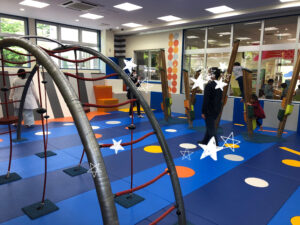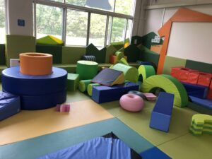 エアートラックやボールプール、ボルタリング、すべり台などがあり、全身を使って遊べます。
