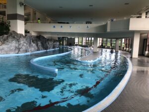 下に降りると流れるプールがあります。